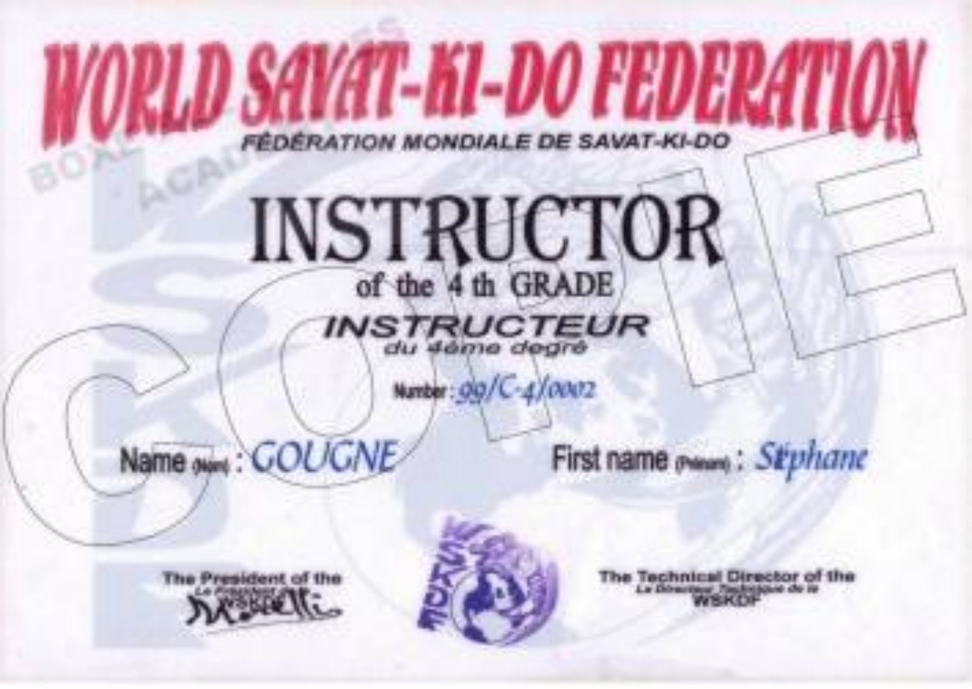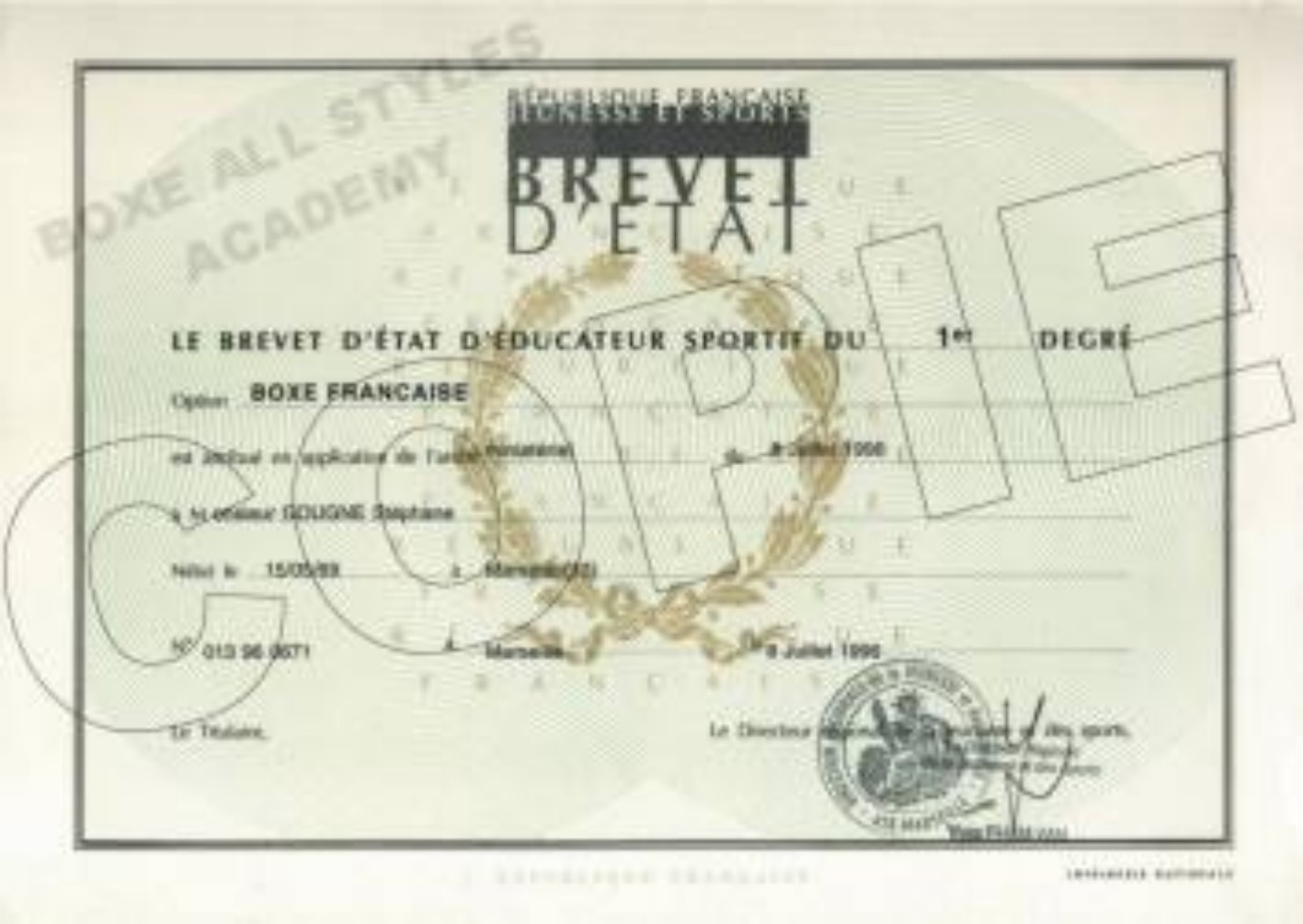 Serge CASCIATORE Vice-Champion de France de Boxe Française Vainqueur de la Coupe de France de BF Savate |